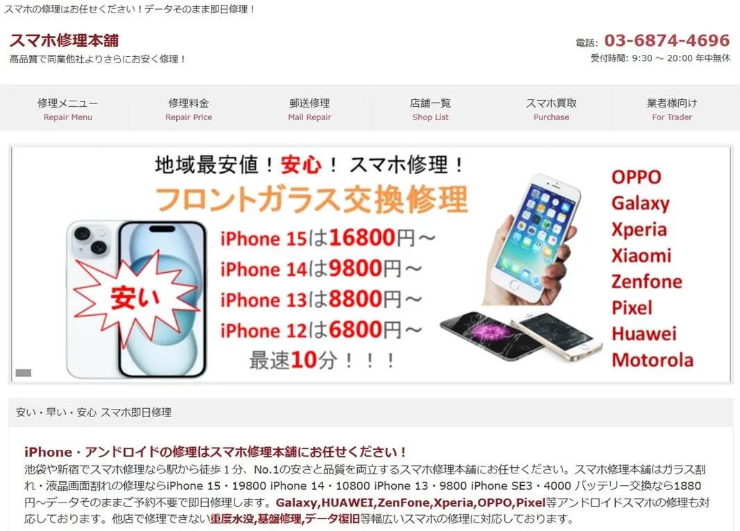 池袋駅西口エリアで「できるだけ安く済ませたい」という人に向いているのが、「スマホ修理本舗 池袋店」です。
